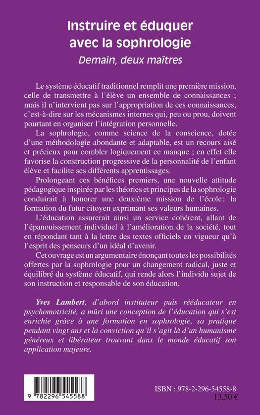 Le système éducatif traditionnel n'intervient pas sur l'appropriation des connaissances, c'est-à-dire sur les mécanismes internes qui doivent en organiser l'intégration personnelle. La sophrologie est un recours précieux pour combler ce manque ; elle favorise la construction progressive de la personnalité de l'enfant élève et facilite ses différents apprentissages. Voici un argumentaire énonçant toutes les possibilités offertes par la sophrologie pour un changement radical du système éducatif.