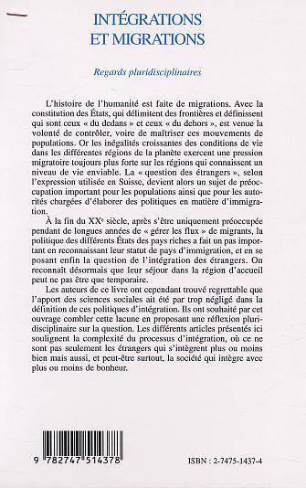 L'histoire de l'humanité est faite de migrations. Les auteurs ont souhaité par cet ouvrage proposer une réflexion sur les politiques d'intégrations. Les différents articles présentés ici soulignent la complexité du processus d'intégration, où ce ne sont pas seulement les étrangers qui s'intègrent plus ou moins bien mais aussi, et peut-être surtout, la société qui intègre avec plus ou moins de bonheur.