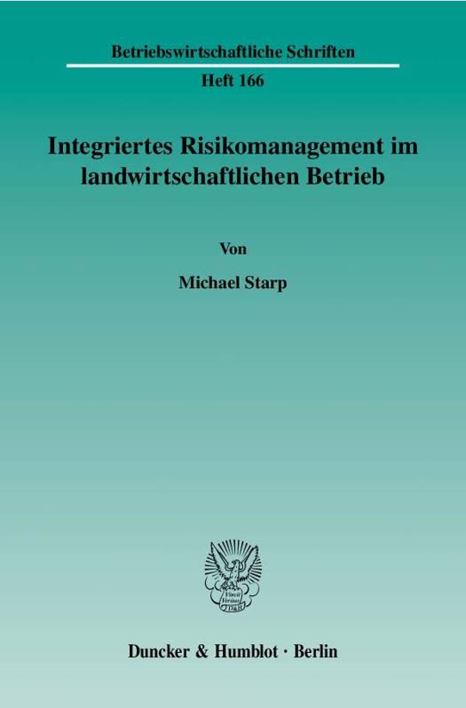 In einem integrierten Ansatz entwickelt Michael Starp ein Entscheidungsunterstützungsmodell, um in Abhängigkeit vom Grad der Risikoaversion und der aktuellen Betriebs- und Marktsituation die optimale Handlungskombination zu finden. Die Wahrscheinlichkeitsverteilungen der Preise und deren Korrelationen werden auf der Grundlage historischer Zeitreihen durch stochastische Prozesse abgebildet. Berücksichtigung finden ferner die standortspezifischen Wahrscheinlichkeitsverteilungen der Erträge. Mit diesen Inputdaten simuliert Starp die gesamtbetriebliche Gewinnverteilung. Zielfunktion ist ein Risko-Wert-Modell, in dem als Risikokomponente der Ausfallerwartungswert und als Wertkomponente der Erwartungswert des Gewinns einfließt. Das Modell wird an zwei Beispielsbetrieben mit jeweils zwei Marktsituationen und unterschiedlicher Gewichtung der Risikokomponente angewendet und bewertet. Ferner vergleicht der Autor die Optimierungsergebnisse, wenn anstatt des Ausfallerwartungswertes die Varianz verwendet wird. Er führt auch einen Vergleich zur Erwartungsnutzentheorie durch.
