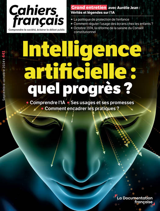 Depuis le lancement de l'application ChatGPT d'Open AI en 2022, l'intelligence artificielle est devenue un sujet central dans le débat public. Certains voient en elle des opportunités prometteuses dans des domaines comme la recherche scientifique, la médecine et la productivité, tandis que d'autres s'inquiètent de son potentiel destructeur, notamment en matière de manipulation, de diffusion de fausses informations et de surveillance de masse. De plus, la crainte de la perte d'emplois, y compris dans des secteurs exigeant une forte compétence cognitive, est également présente. Se questionner sur les conséquences de l'utilisation généralisée de l'IA générative et la régulation de ses usages pour prévenir d'éventuels abus est essentiel. Ce numéro de Cahiers français examine les différentes perspectives liées au développement de l'intelligence artificielle en essayant de trouver un juste milieu entre les prophéties alarmistes et l'engouement technologique.