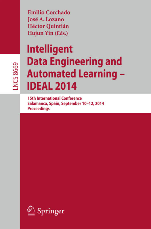 This book constitutes the refereed proceedings of the 15th International Conference on Intelligent Data Engineering and Automated Learning, IDEAL 2014, held in Salamanca, Spain, in September 2014. The 60 revised full papers presented were carefully reviewed and selected from about 120 submissions. These papers provided a valuable collection of recent research outcomes in data engineering and automated learning, from methodologies, frameworks, and techniques to applications. In addition the conference provided a good sample of current topics from methodologies, frameworks, and techniques to applications and case studies. The techniques include computational intelligence, big data analytics, social media techniques, multi-objective optimization, regression, classification, clustering, biological data processing, text processing, and image/video analysis.