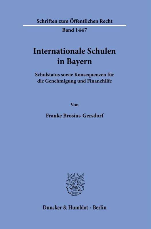 Internationale Schulen sind private allgemeinbildende Einrichtungen, deren Angebot sich primar an Kinder von Eltern richtet, die als auslandische Fach- und Fuhrungskrafte fur eine begrenzte Zeit nach Deutschland kommen. Internationale Schulen fuhren auf der Grundlage international standardisierter Curricula zu weltweit anerkannten Abschlussen wie dem Middle Years Programme und dem International Baccalaureate Diploma, die auch von der Kultusministerkonferenz anerkannt sind. Der Schulstatus (Ersatz- oder Erganzungsschule) der Internationalen Schulen in Deutschland ist in den meisten Schulgesetzen der Lander nicht geregelt und verfassungsrechtlich ungeklart. Frauke Brosius-Gersdorf widmet sich den landesschulrechtlichen und verfassungsrechtlichen Rahmenbedingungen fur private Schulen und arbeitet heraus, dass Internationale Schulen in Bayern rechtlich als Ersatzschulen zu qualifizieren sind. Das hat Konsequenzen fur ihre Genehmigung und ihre Finanzierung durch Schulgeld sowie staatliche Finanzhilfe.