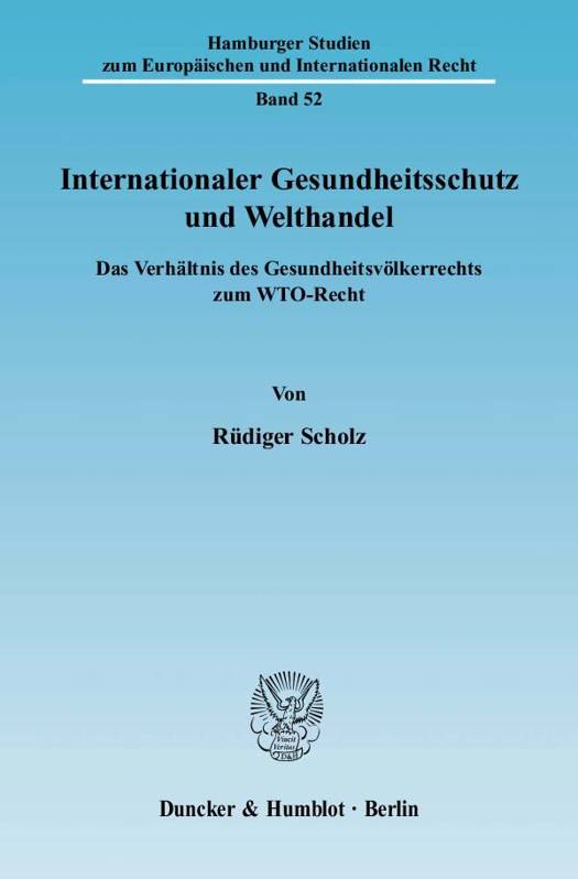 Rüdiger Scholz beleuchtet das komplexe Zusammenspiel von Gesundheitsvölkerrecht und WTO-Recht. Den Kern der Arbeit bildet die zukünftige Koordination der völkerrechtlichen Regime. Dazu analysiert der Verfasser neben dem einschlägigen WTO-Recht das sich in den letzten Jahren verstärkt entwickelnde Gesundheitsvölkerrecht, in dessen Zentrum die Weltgesundheitsorganisation (WHO) steht. Dabei überprüft er, inwiefern die Arbeit der Codex Alimentarius Kommission (CAK) im Bereich Lebensmittelsicherheit mittlerweile rechtsstaatlichen Standards genügt. Die Einführung von regionalen Lebensmittelstandards wird empfohlen, um die Arbeit der CAK von handelspolitischen Konflikten freizuhalten. Rüdiger Scholz analysiert kritisch die reformierten Internationalen Gesundheitsvorschriften zum Schutz vor der internationalen Verbreitung von Gesundheitsgefahren. Die etablierte Arbeitsteilung zwischen CAK und WTO erweist sich als reformbedürftig.