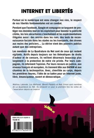 Les membres de La Quadrature du Net sont de ceux qui restent vigilants. Actifs depuis toujours sur les thématiques de droits d’auteur et de censure, ils veillent désormais beaucoup plus largement à la protection de notre vie privée. Par leurs campagnes, ils informent l’opinion. Par leurs recours en justice, aux niveaux français et européen, ils tiennent tête aux GAFAM et aux chantres de la technopolice. Avec, chevillée au corps, depuis les premières heures, l’idée de se battre pour un Internet juste, libre, émancipateur, ouvert et démocratique.