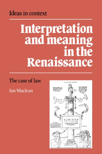 This book examines Renaissance modes of interpretation as they arise in legal contexts, and relates them to modern debates about meaning and its determination. By placing legal hermeneutic theories in their institutional and pedagogical contexts, the author is able to give an account of Renaissance thought showing how it operates in its own terms, and in relation to the thought of the medieval period. Renaissance legal thought is also compared to modern discussions of interpretation, allowing a critical examination of its coherence and consistency.