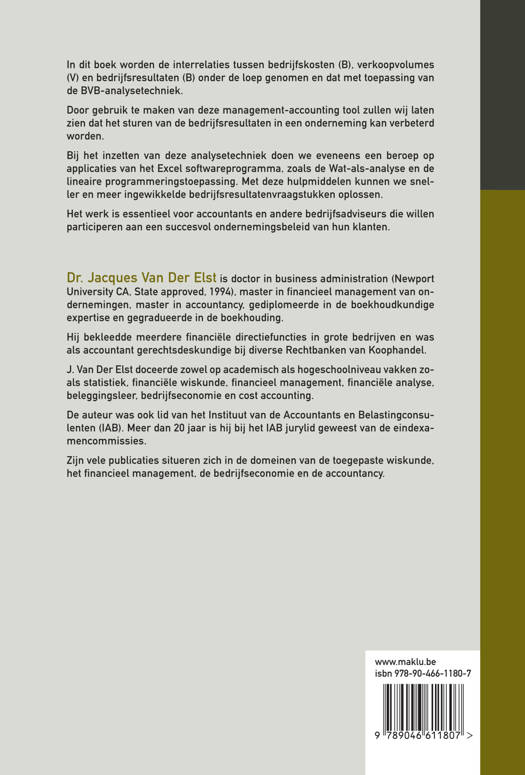 In dit boek worden de interrelaties tussen bedrijfskosten (B), verkoopvolumes (V) en bedrijfsresultaten (B) onder de loep genomen en dat met toepassing van de BVB-analysetechniek.