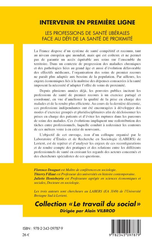 La France dispose d'un système de santé compétitif et reconnu, mais coûteux. Il ne permet pas de garantir un accès équitable aux soins sur l'ensemble du territoire. Les enjeux économiques liés à la maîtrise des dépenses de santé imposent la nécessité d'adapter l'offre de soins de proximité. Les évolutions impliquent une redistribution des tâches entre professionnels, laquelle conduit à redessiner les contours de ces métiers, voire à en créer de nouveaux. Cet ouvrage repère et analyse les enjeux de ces reconfigurations et rend compte des pratiques et relations entre les différents professionnels de santé.