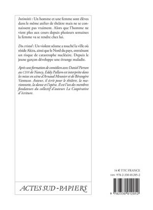 «Intimités» : Un homme et une femme sont élèves dans le même atelier de théâtre mais ne se connaissent pas vraiment. Alos que l'homme ne vient plus aux cours depuis plusieurs semaines la femme va se rendre chez lui.