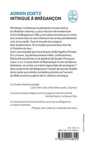 Pénélope, la fameuse et pétulante conservatrice du Mobilier national, a pour mission de moderniser le fort de Brégançon. Elle y est à peine arrivée qu’un crime est commis dans la cour intérieure de ce lieu parfaitement clos et surveillé. Tout le monde est suspect, bien évidemment. Et le mobile pourrait bien être lié à l’histoire du lieu… Voici une enquête que n’aurait pas reniée Agatha Christie. On y trouve, mystérieusement mêlés, la Résistance, Nikita Khrouchtchev et le général de Gaulle. Pourquoi celui-ci a-t-il voulu doter la République d’une résidence balnéaire, ce rocher où il était impossible de se baigner ? Que cache le fort de Brégançon ? Autant de secrets révélés dans cette succulente comédie policière où l’accent du Midi se joint au génie de la création artistique.