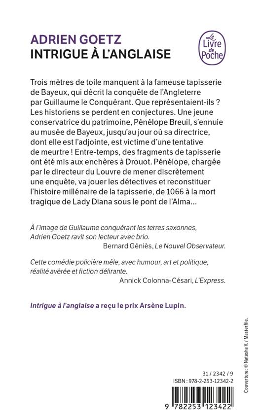Trois mètres de toile manquent à la fameuse tapisserie de Bayeux, qui décrit la conquête de l’Angleterre par Guillaume le Conquérant. Que représentaient-ils ? Les historiens se perdent en conjectures. Une jeune conservatrice du patrimoine, Pénélope Breuil, s’ennuie au musée de Bayeux, jusqu’au jour où la directrice du musée, dont elle est l’adjointe, est victime d’une tentative de meurtre ! Entre-temps, des fragments de tapisserie ont été mis aux enchères à Drouot. Pénélope, chargée par le directeur du Louvre de mener discrètement une enquête, va jouer les détectives et reconstituer l’histoire millénaire de la tapisserie, de 1066 à la mort tragique de Lady Diana sous le pont de l’Alma…