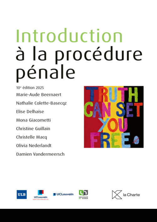 Le présent ouvrage, fruit d’une collaboration entre l’UCLouvain, l'ULB et l’UNamur, a été conçu comme support pour l’enseignement de base du cours de « Droit de la procédure pénale » dispensé aux étudiants en droit et en criminologie. Il s'adresse toutefois également à tous les avocats et magistrats qui peuvent être amenés à pratiquer un jour la procédure pénale, comme d'ailleurs aux autres professionnels ou simples particuliers que ces questions intéressent. L’ouvrage a pour ambition de constituer pour le lecteur un outil simple et à jour pour aborder la procédure pénale, non seulement en théorie mais également dans ses aspects pratiques. De nombreux renvois sont opérés entre les chapitres pour permettre une vue transversale de la matière. S’agissant d’un ouvrage d’introduction à une discipline d’une très grande complexité, nous nous sommes délibérément limités à exposer les règles et principes fondamentaux qui régissent la procédure pénale. Nous avons également choisi de limiter le nombre et l’importance des notes de bas de page afin de ne pas nuire à la simplicité et à la lisibilité du propos. Pour un approfondissement de la matière, nous renvoyons au livre Droit de la procédure pénale, également édité par la Charte et dont la 10e édition vient de paraître.