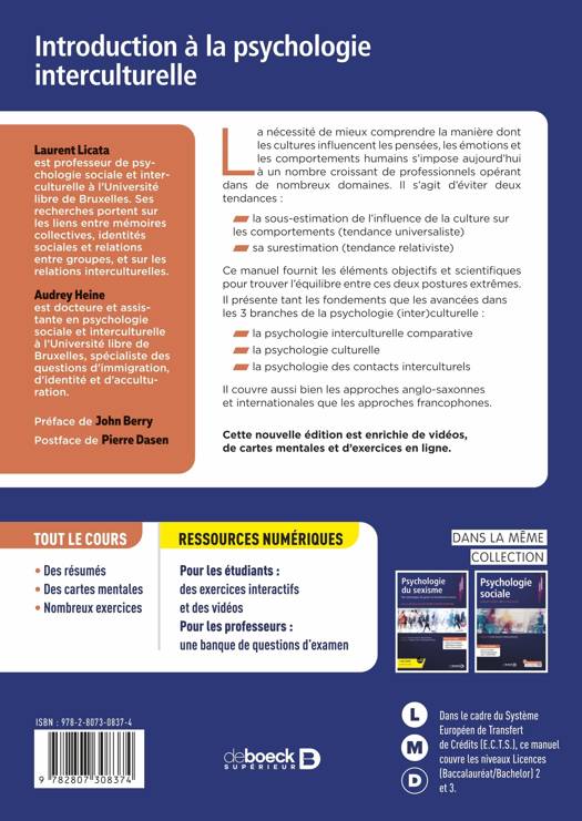 Ce manuel fournit les éléments objectifs et scientifiques pour trouver l’équilibre entre ces deux postures extrêmes. Il présente tant les fondements que les avancées dans les 3 branches de la psychologie (inter)culturelle :
