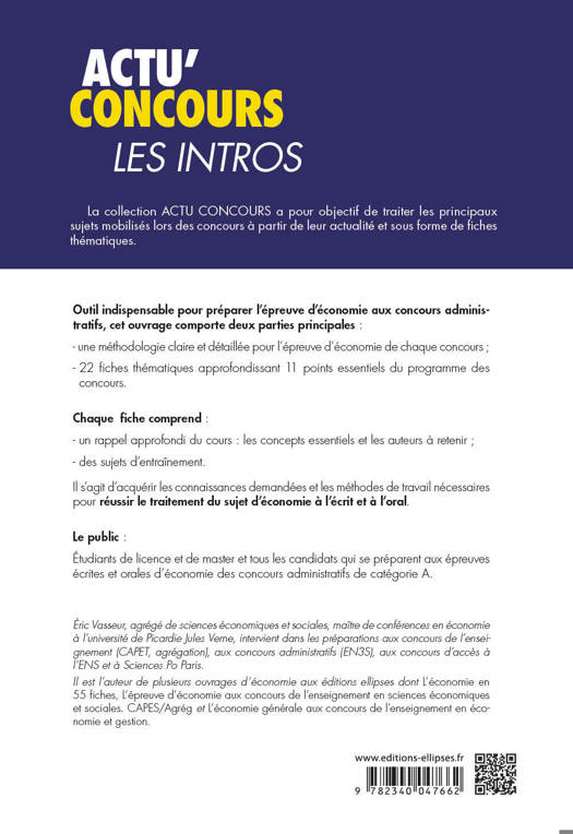 Cet ouvrage a pour but de présenter les bases de l'économie pour toutes les personnes se préparant à des concours, avec :