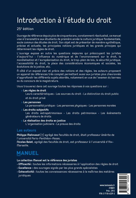 Ouvrage de référence depuis plus de cinquante ans, constamment réactualisé, ce manuel vise à transmettre aux étudiants de première année la culture juridique fondamentale, socle commun des études de droit. Son objet est de présenter de manière synthétique, précise et actuelle, les principales notions juridiques et les grands principes qui déterminent les règles de droit.