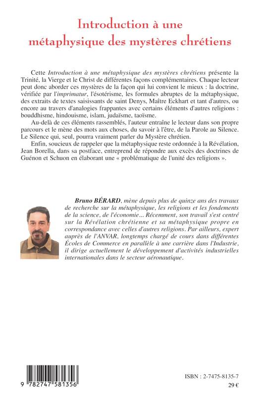 Cette introduction à une métaphysique des mystères chrétiens présente la Trinité, la Vierge et le Christ de différentes façons complémentaires. Chaque lecteur peut donc aborder ces mystères de la façon qui lui convient le mieux: la doctrine vérifiée par l'imprimatur, l'ésotérisme, les formules abruptes de la métaphysique, des extraits de textes saisissants de saint Denys, Maître Eckhart et tant d'autres, ou encore au travers d'analogies frappantes avec certains éléments d'autres religions: bouddhisme, hindouisme, islam, judaïsme, taoïsme.