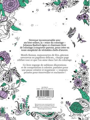 Devenue incontournable avec ses best-sellers, la "reine du coloriage" Johanna Basford signe ce charmant livre de coloriage à emporter partout, pour créer en toute simplicité de véritables chefs-d'oeuvre. Motifs floraux, maisonnettes de fées, gâteaux savoureux ou papillons délicats... chaque page célèbre tout ce que l'on aime dans l'art du coloriage...