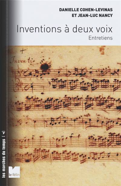 Ce dialogue entre Danielle Cohen-Levinas et Jean-Luc Nancy a commencé depuis longtemps, un peu sur le mode d'une forme musicale, telle qu'on la trouve à l'époque classique et baroque. L'inventeur de l'invention est Jean-Sébastien Bach. Il s'agit ici d'une invention à deux voix, qui se déploie dans le temps sans jamais viser sa finalité ou sans jamais toucher à sa fin.