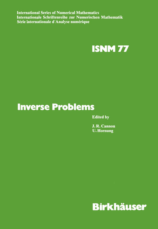 The present volume contains manuscripts of lectures or topics related to the lectures which were given at the conference on "Inverse Problems" at the mathematical Research Institute at Oberwolfach. The conference took place during the week of May 18-24, 1986, and was managed by the editors. Recalling Professor Joseph Keller's paper entitled Inverse Problems, American Mathematical Monthly, 83 (1976), we give two direct quotes. "We call two problems inverses of one another if the formulation of each involves all or part of the solution of the other. Often, for historical reasons, one of the two problems has been studied extensively for some time, while the other is newer and not so well understood. In such cases, the former is called the direct problem, while the latter is called the inverse problem. " "The main sources of inverse problems are science and engineering. Often these problems concern the determination of the properties of some inaccess- ible regions from observations on the boundary of that region. " Often, inverse problems are not well posed. This increases the difficulty in their analysis and numerical solution. As can be seen from the table of content of this volume, the conference covered inverse problems in scattering theory, seismology, tomography, estimation of coefficients and source terms in parabolic and elliptic differential equations, the inverse Sturm-Liouville problem, and numerical methods. The editors wish to thank Professor M. Barner and his co-workers of the Mathematical Research Institute for their help in creating the conference.