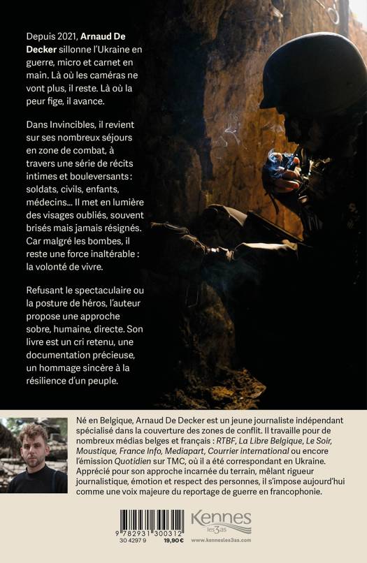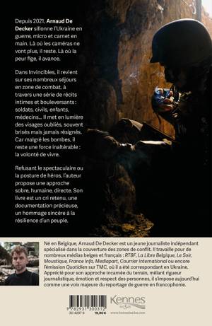 Dans Invincibles, il revient sur ses nombreux séjours en zone de combat, à travers une série de récits intimes et bouleversants : soldats, civils, enfants, médecins… Il met en lumière des visages oubliés, souvent brisés mais jamais résignés. Car malgré les bombes, il reste une force inaltérable : la volonté de vivre.