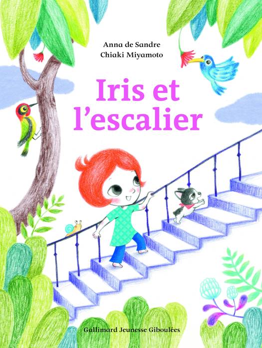 Iris est haute comme trois pommes. Et l'escalier est si haut. 1, 2, 3, 4, 5, 6, 7, 8, 9 et 10 marches ! C'est impressionnant, alors elle le gronde pour se donner du courage. Une fois l'escalier vaincu, Iris veut grimper plus haut, elle veut toucher le ciel ! Alors commence l'aventure...