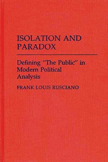 Isolation and Paradox evolved from lectures and seminars delivered while Professor Rusciano was Visiting Professor at the Institut fur Publizistik at the University of Mainz, the German Federal Republic. Political and social scientists, as well as students in political theory, contemporary political analysis, comparative politics, public opinion, and political methodology will find this careful, logical study and its full complement of tables and charts necessary and informative reading.
