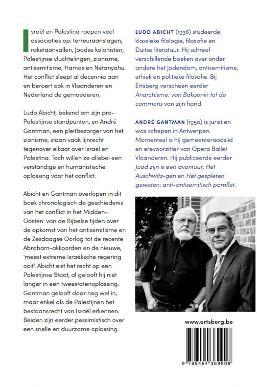 Dit boek is de unieke neerslag van urenlange gesprekken tussen Ludo Abicht en André Gantman over oorzaak, verloop en mogelijke oplossingen voor het conflict Israël-Palestina.