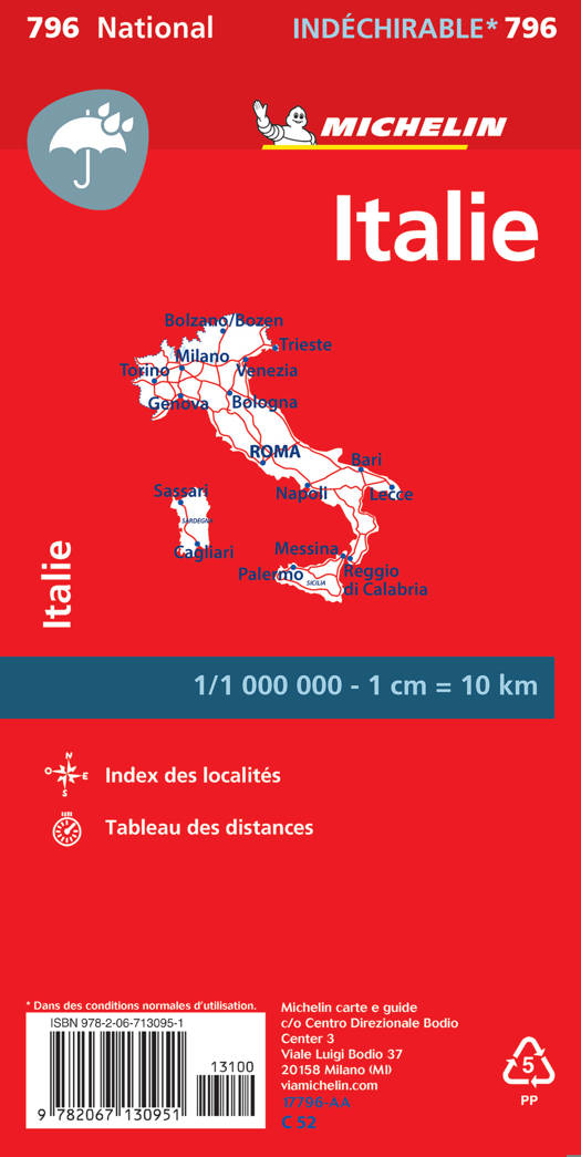 Raadpleeg de Michelin NATIONAL kaart Italie - Italië onverscheurbaar om uw verplaatsingen te optimaliseren en er een totaalbeeld van te krijgen. Op waterbestendig en scheurvast papier is dit de referentie voor de meest veeleisende gebruikers. Ze kan honderden keren gemanipuleerd worden, zelfs in de regen, zonder te scheuren aan de plooien en steeds makkelijk gevouwd worden. Met een schaal van 1/1 000 000 dekt ze met nauwkeurigheid en betrouwbaarheid het land om u te helpen bij uw verplaatsingen. Of u nu op zoek bent naar schilderachtige wegen of u wilt zich snel verplaatsen op de wegen, ze beantwoordt aan al uw behoeftes. De volledige plaatsindex, toeristische informatie en de tabel met afstanden zijn onmisbare elementen om uw reis beter voor te bereiden en u zonder zorgen te verplaatsen. Vind meer dan uw weg met de kaarten en atlassen van Michelin!