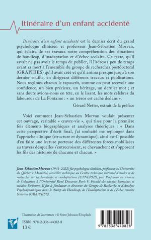 Itinéraire d'un enfant accidenté est le dernier écrit du grand psychologue clinicien et professeur Jean-Sébastien Morvan, qui éclaira de ses travaux notre compréhension des situations de handicap, d'inadaptation et d'échec scolaire. Ce texte, qu'il savait ne pas avoir le temps de publier, il l'adressa peu de temps avant sa mort à l'ensemble du groupe de recherches postdoctoral (GRAPHIES) qu'il avait créé et qu'il anima presque jusqu'à son dernier souffle, en dirigeant différents travaux et publications. Nous reçûmes chacun le tapuscrit, comme on peut recevoir une confidence, un bien précieux, un héritage, un dernier mot; et sans doute avions-nous en tête, en le lisant, les mots célèbres du laboureur de La Fontaine: un trésor est caché dedans .