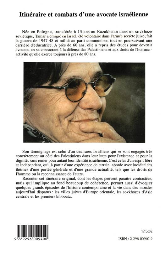 Israélienne originaire d'Asie centrale, femme, communiste et propalestinienne, autant d'ingrédients qui rendent le parcours de Tamar Pelleg-Sryck, de la guerre de 48 à nos jours, exceptionnel. Son témoignage est celui d'un des rares Israéliens qui se sont engagés très concrètement au côté des Palestiniens. Cet itinéraire nous fait découvrir ce qu'étaient les villes juives d'Europe orientale, les sovkhozes d'Asie centrale et les premiers kibboutz.