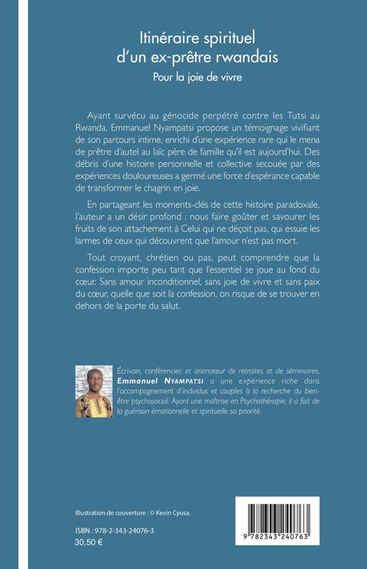 Ayant survécu au génocide perpétré contre les Tutsi au Rwanda, Emmanuel Nyampatsi propose un témoignage vivifiant de son parcours intime, enrichi d'une expérience rare qui le mena de prêtre d'autel au laïc père de famille qu'il est aujourd'hui. Des débris d'une histoire personnelle et collective secouée par des expériences douloureuses a germé une force d'espérance capable de transformer le chagrin en joie.