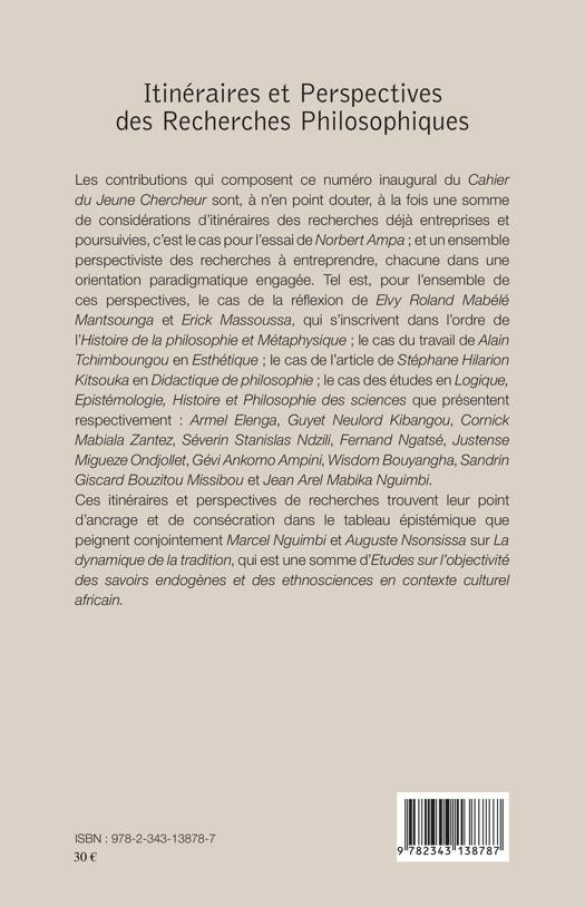 Les contributions qui composent ce numéro inaugural du Cahier du jeune chercheur sont à la fois une somme de considérations d'itinéraires des recherches déjà entreprises et poursuivies et un ensemble perspectiviste des recherches à entreprendre, chacune dans une orientation paradigmatique engagée. Ils trouvent leur point d'ancrage et de consécration dans le tableau épistémique que peignent Marcel Nguimi et Auguste Nsonsissa sur la « dynamique de la tradition », qui est une somme d'étude sur l'objectivité des savoirs endogènes et des ethnosciences en contexte culturel africain.