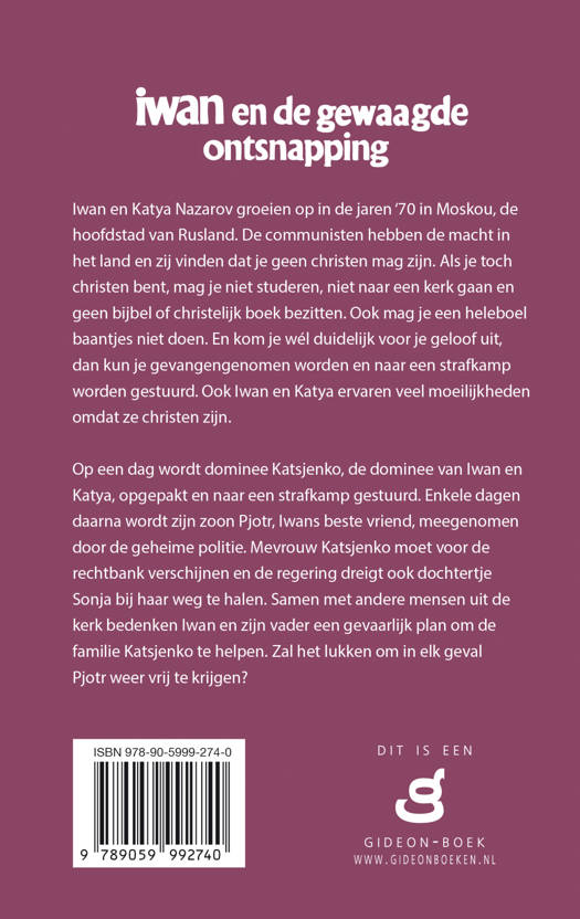 Iwan en Katya Nazarov groeien op in de jaren ‘70 in Moskou, de hoofdstad van Rusland. De communisten hebben de macht in het land en zij vinden dat je geen christen mag zijn. Als je toch christen bent, mag je niet studeren, niet naar een kerk gaan en geen bijbel of christelijk boek bezitten. Ook mag je een heleboel baantjes niet doen. En kom je wél duidelijk voor je geloof uit, dan kun je gevangengenomen worden en naar een strafkamp worden gestuurd. Ook Iwan en Katya ervaren veel moeilijkheden omdat ze christen zijn. Op een dag wordt dominee Katsjenko, de dominee van Iwan en Katya, opgepakt en naar een strafkamp gestuurd. Enkele dagen daarna wordt zijn zoon Pjotr, Iwans beste vriend, meegenomen door de geheime politie. Mevrouw Katsjenko moet voor de rechtbank verschijnen en de regering dreigt ook dochtertje Sonja bij haar weg te halen. Samen met andere mensen uit de kerk bedenken Iwan en zijn vader een gevaarlijk plan om de familie Katsjenko te helpen. Zal het lukken om in elk geval Pjotr weer vrij te krijgen?