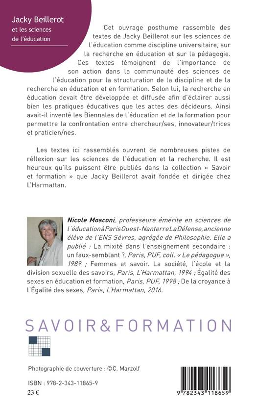 Cet ouvrage posthume rassemble des textes de Jacky Beillerot sur les sciences de l'éducation comme discipline universitaire, sur la recherche en éducation et sur la pédagogie. Ses textes témoignent de l'importance de son action dans la communauté des sciences de l'éducation. Ils ouvrent de nombreuses pistes de réflexion sur les sciences de l'éducation et la recherche. Ils sont publiés dans la collection fondée par Jacky Beillerot.