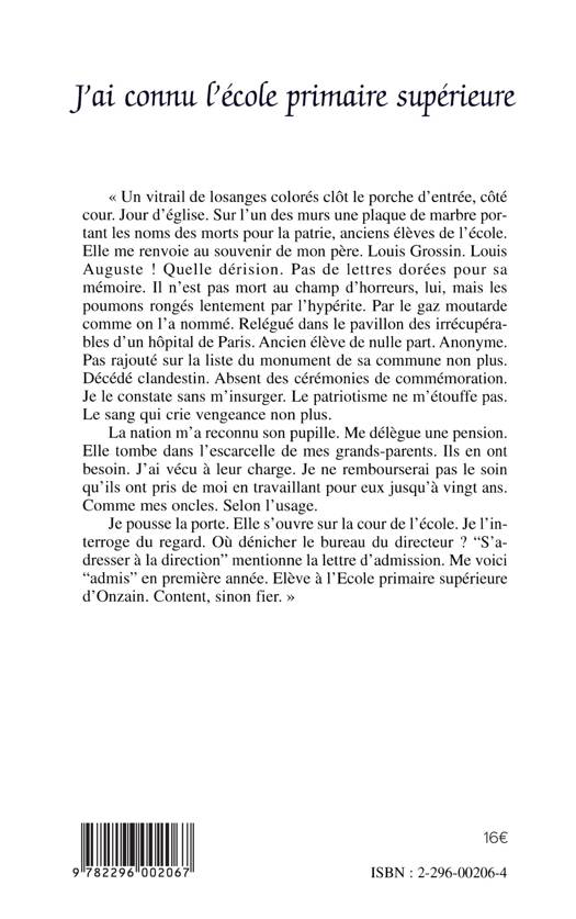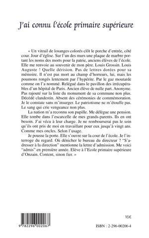 Après J'ai connu le Moyen-Age, Récit de vie : enfance, voici la suite. William Grossin est maintenant adolescent. Son père est mort suite aux dégâts causés par l'hypérite, gaz auquel il a été confronté pendant la guerre. Le jeune garçon a été élevé par ses grands-parents et il est aujourd'hui "admis" en première année à l'Ecole primaire supérieure d'Onzain grâce à son succès aux "Bourses". Cet ouvrage est publié à titre posthume.