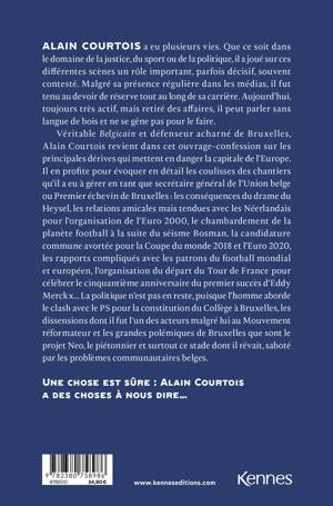 Alain Courtois a eu plusieurs vies. Que ce soit dans le domaine de la justice, du sport ou de la politique, il a joué sur ces différentes scènes un rôle important, parfois décisif, souvent contesté. Malgré sa présence régulière dans les médias, il fut tenu au devoir de réserve tout au long de sa carrière. Aujourd’hui, toujours très actif, mais retiré des affaires, il peut parler sans langue de bois et ne se gêne pas pour le faire.