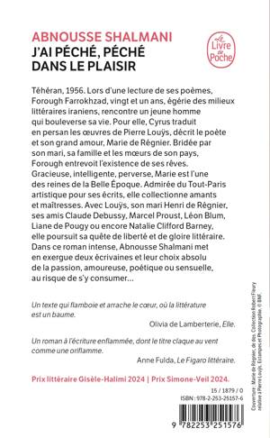 Téhéran, 1956. Lors d’une lecture de ses poèmes, Forough Farrokhzad, vingt ans, égérie des milieux littéraires iraniens, rencontre un jeune homme qui bouleverse sa vie. Pour elle, Cyrus traduit en persan les œuvres de Pierre Louÿs, décrit le poète et son grand amour, Marie de Régnier. Bridée par son mari, sa famille et les mœurs de son pays, Forough entrevoit l’existence de ses rêves.