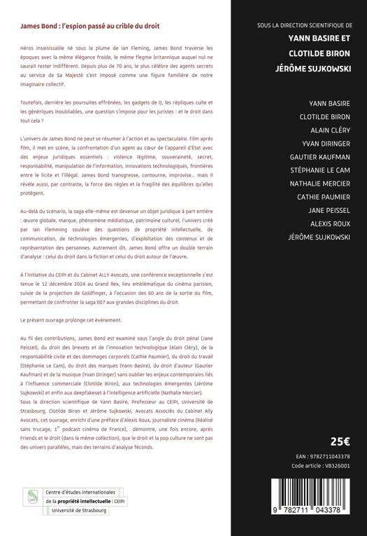 L'ouvrage recense les actes du colloque organisé le 12 décembre par le CEIPI et ALLY Avocats consacré à l'univers de 007. Une plongée fascinante dans les dessous juridiques de l'agent secret le plus célèbre du monde.