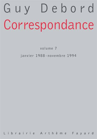 En 1988, Guy Debord fait paraître ses retentissants Commentaires sur la société du spectacle, où les «quelques conséquences pratiques, encore peu connues, qui résultent de ce déploiement rapide du spectacle durant les vingt dernières années» viendront confirmer ses thèses de 1967, en disant «ce qui est». De façon similaire, sa correspondance – qui avec ce volume arrive à son terme – montre, durant les sept années qui vont lui rester à vivre, que face à une nouvelle forme de notoriété il continue de juger et d’agir selon ce qu’il est. Il décidera, le 30 novembre 1994, de franchir, à l’heure choisie, sa propre ligne d’arrivée ; comme il avait décrété que l’année 1951 devait être celle de son véritable point de départ. Car «la suite était déjà contenue dans le commencement de ce voyage».