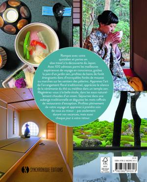 Avec 100 adresses parmi les meilleures expériences de voyage en conscience, goûtez la paix d’un jardin zen, profitez de bains de forêt énergisants dans d’incroyables forêts de mousse ou marchez sur les sentiers des pèlerins. Apprenez l’art de l’arrangement floral traditionnel, appréciez le silence de la cérémonie du thé ou méditez dans un temple zen. Régénérez-vous à la belle étoile, dans les eaux naturellement chaudes d’un onsen. Séjournez dans une auberge traditionnelle et dégustez les mets raffinés de restaurants d’exception.