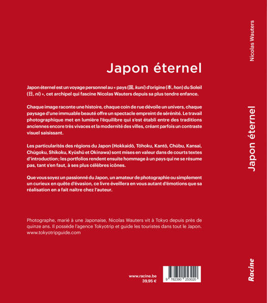 Japon éternel est un voyage personnel au « pays (国, kuni) d'origine (本, hon) du Soleil (日, ni) », cet archipel qui fascine Nicolas Wauters depuis sa plus tendre enfance.