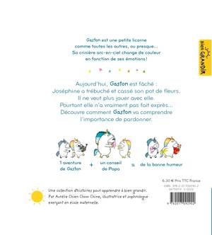 En jouant, Joséphine, trébuche et casse le pot de fleurs de Gaston. Elle a beau s’excuser, rien n’y fait : Gaston est en colère et ne veut plus jouer avec elle. Mais quand il abime à son tour la peluche de Joséphine, sans faire exprès, Gaston se rend compte qu’on peut faire de la peine aux autres sans le vouloir. Dans ces cas-là, il est important de savoir pardonner et de chercher ensemble une solution pour réparer ses torts.