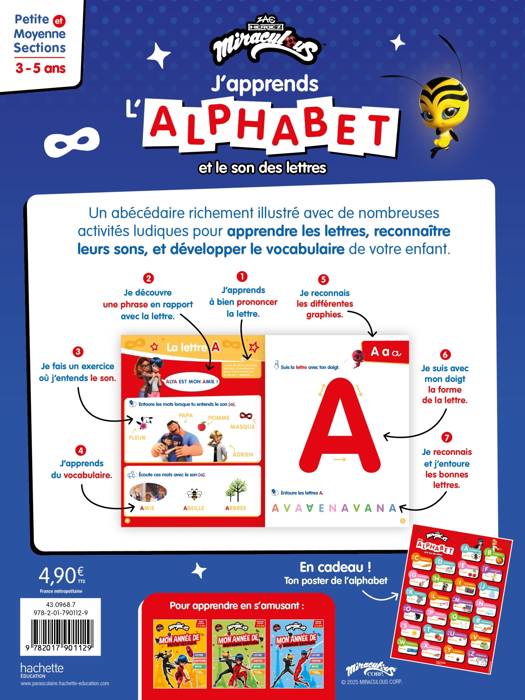Un abécédaire richement illustré avec de nombreuses activités ludiques pour apprendre les lettres, reconnaître leurs sons et développer le vocabulaire de votre enfant.
