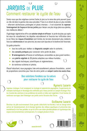 Face à un climat de plus en plus instable – alternant sécheresses prolongées et pluies intenses –, il est essentiel de repenser l’aménagement de l’espace et de nos jardins pour laisser une plus large place aux plantes, nos meilleures alliées ! L’hydrologie régénérative offre une solution simple et efficace : le jardin de pluie, qui capte les eaux de ruissellement, les dépollue naturellement et favorise leur infiltration dans le sol. Ainsi, les risques d’inondation sont limités, les terrains deviennent plus résilients face aux sécheresses et aux pénuries, les eaux sont épurées et la biodiversité favorisée. Ce guide présente : tous les outils pour réaliser un diagnostic complet selon le contexte ; des conseils pratiques pour concevoir votre jardin de pluie ; 10 aménagements efficaces et esthétiques, accessibles au plus grand nombre ; une palette végétale de 30 plantes adaptées aux milieux humides ; des rappels techniques, scientifiques et réglementaires ; de nombreux schémas et photos. Massif absorbant, noue paysagère, haie antiruissellement, pelouse d’inondation… autant de propositions concrètes pour faire de votre jardin un rempart contre les excès d’eau.