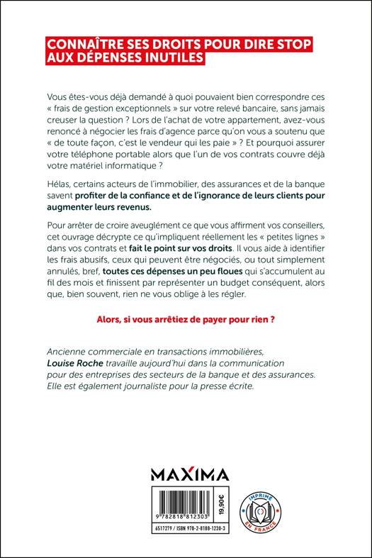 Vous êtes-vous déjà demandé à quoi pouvaient bien correspondre ces « frais de gestion exceptionnels » sur votre relevé bancaire, sans jamais creuser la question ? Lors de l’achat de votre appartement, avez-vous renoncé à négocier les frais d’agence parce qu’on vous a soutenu que « de toute façon, c’est le vendeur qui les paie » ? Et pourquoi assurer votre téléphone portable alors que l’un de vos contrats couvre déjà votre matériel informatique ? Hélas, certains acteurs de l’immobilier, des assurances et de la banque savent profiter de la confiance et de l’ignorance de leurs clients pour augmenter leurs revenus. Pour arrêter de croire aveuglément ce que vous affirment vos conseillers, cet ouvrage décrypte ce qu’impliquent réellement les « petites lignes » dans vos contrats et fait le point sur vos droits. Il vous aide à identifier les frais abusifs, ceux qui peuvent être négociés, ou tout simplement annulés, bref, toutes ces dépenses un peu floues qui s’accumulent au fil des mois et finissent par représenter un budget conséquent, alors que, bien souvent, rien ne vous oblige à les régler. Alors, si vous arrêtiez de payer pour rien ?