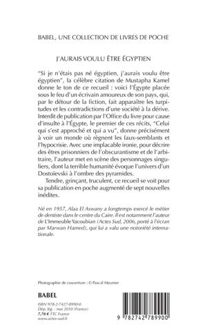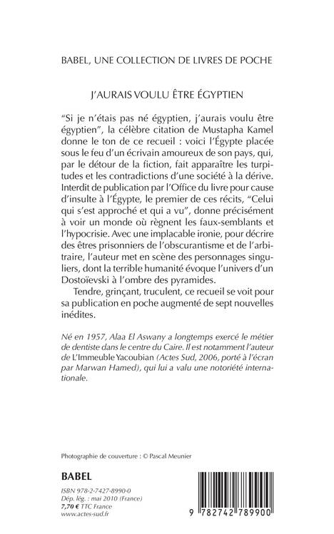 "Si je n'étais pas né égyptien, j'aurais voulu être égyptien", la célèbre citation de Mustapha Kamel donne le ton de ce recueil : voici l'Egypte placée sous le feu d'un écrivain amoureux de son pays, qui, par le détour de la fiction, fait apparaître les turpitudes et les contradictions d'une société à la dérive. Interdit de publication par l'Offi ce du livre pour cause d'insulte à l'Egypte, le premier de ces récits, "Celui qui s'est approché et qui a vu", donne précisément à voir un monde où règnent les faux-semblants et l'hypocrisie. Avec une implacable ironie, pour décrire des êtres prisonniers de l'obscurantisme et de l'arbitraire, l'auteur met en scène des personnages singuliers, dont la terrible humanité évoque l'univers d'un Dostoïevski à l'ombre des pyramides. Tendre, grinçant, truculent, ce recueil se voit pour sa publication en poche augmenté de sept nouvelles inédites.