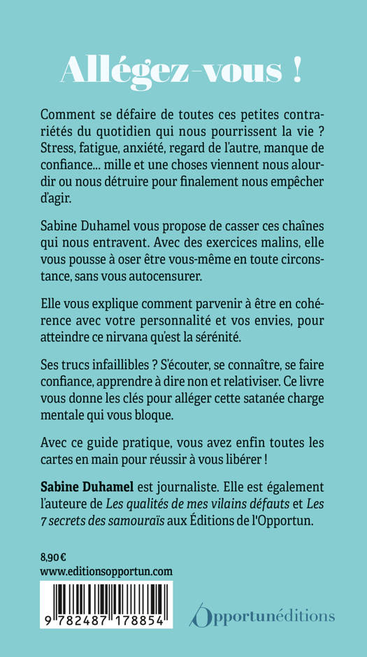 Ses trucs infaillibles ? S'écouter, se connaître, se faire confiance, apprendre à dire non et relativiser. Ce livre vous donne les clés pour alléger cette satanée charge mentale qui vous bloque.