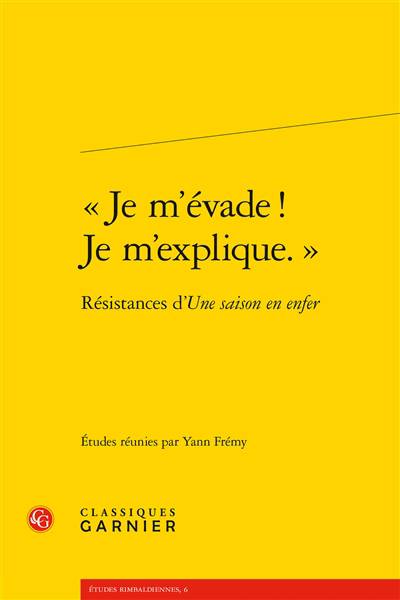 « Je m'évade ! Je m'explique » : le drame d'Une saison en enfer semble contenu dans ce court passage tiré de L'Impossible. C'est bien l'impossibilité de s'évader sans s'expliquer, ou de s'évader et de s'expliquer vraiment, qui rend impossible chez le poète toute rupture définitive. Si, en 1871, Rimbaud avait pu rêver à quelque tabula rasa, en 1873, la situation est différente : les représentations, le monde, le langage résistent. Mais le poète également. Comme ces onze études en témoignent, Une saison en enfer est bien une oeuvre de « résistances ».