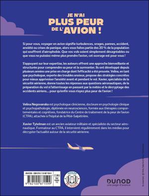 que psychologue, experte des troubles anxieux, propose des stratégies concrètes pour mieux apprivoiser l’anxiété avant et pendant le vol. Xavier, spécialiste de la sécurité aérienne, donne toutes les réponses aux questions aéronautiques, de la préparation du vol à l’atterrissage en passant par la météo et le décryptage des accidents aériens… pour qu’enfin vous n’ayez plus peur de l’avion !