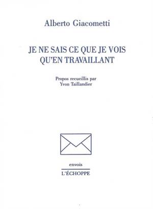 Ces propos de Giacometti, recueillis en 1952 par Yvon Taillandier, étaient restés inédits en français. Le sculpteur y évoque sa façon de travailler, ses oeuvres des années 30, la question du grand et du minuscule, du champ visuel...