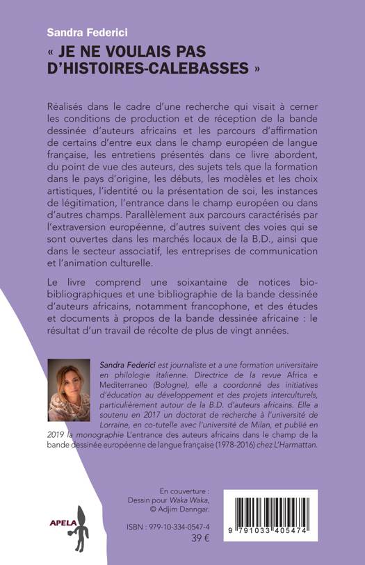 Réalisés dans le cadre d'une recherche qui visait à cerner les conditions de production et de réception de la bande dessinée d'auteurs africains et les parcours d'affirmation de certains d'entre eux dans le champ européen de langue française, les entretiens présentés dans ce livre abordent, du point de vue des auteurs, des sujets tels que la formation dans le pays d'origine, les débuts, les modèles et les choix artistiques, l'identité ou la présentation de soi, les instances de légitimation, l'entrance dans le champ européen ou dans d'autres champs. Le livre comprend une soixantaine de notices biobibliographiques et une bibliographie de la bande dessinée d'auteurs africains, notamment francophone, et des études et documents à propos de la bande dessinée africaine.